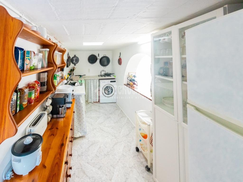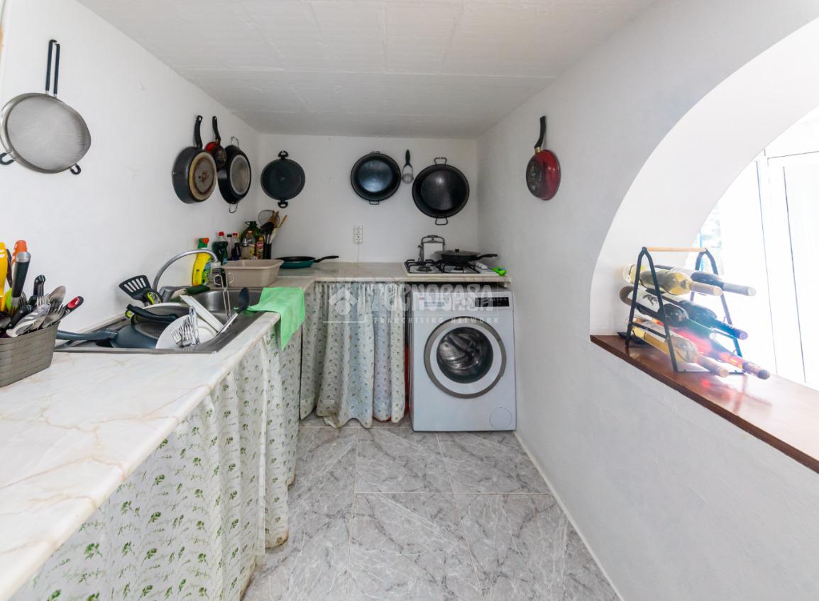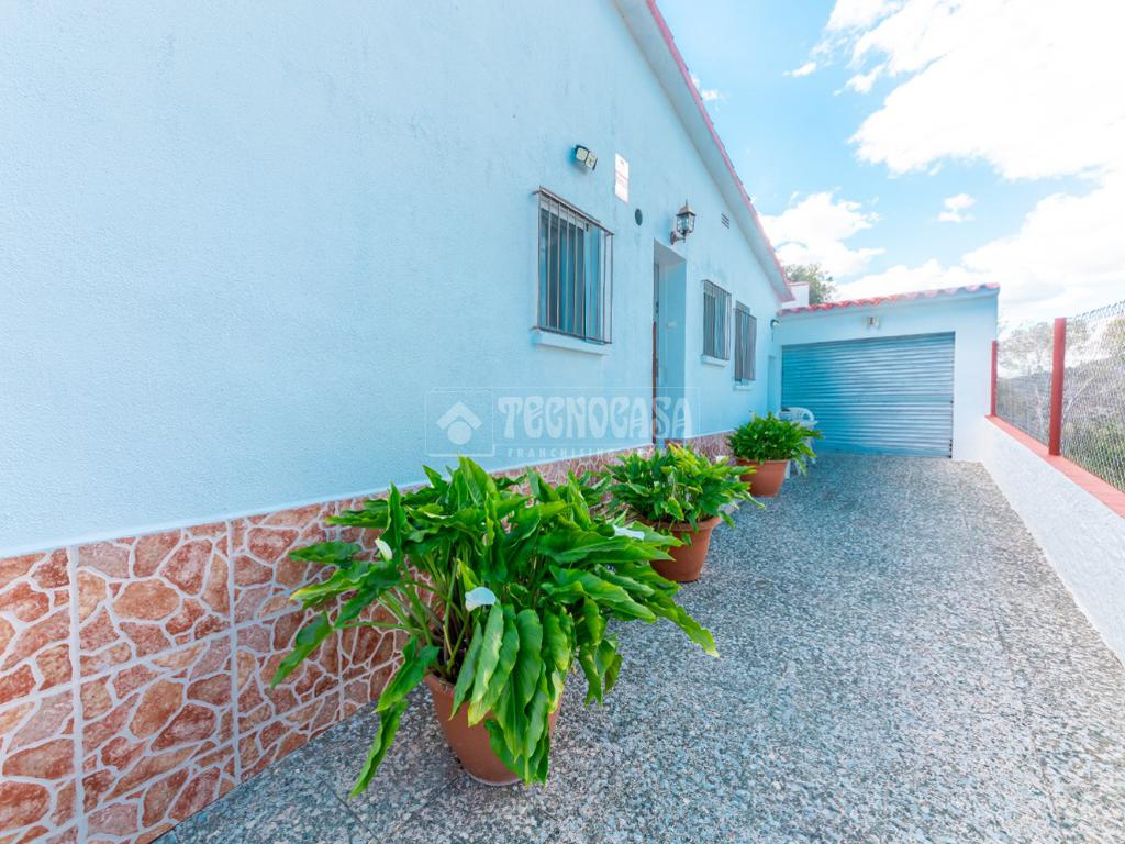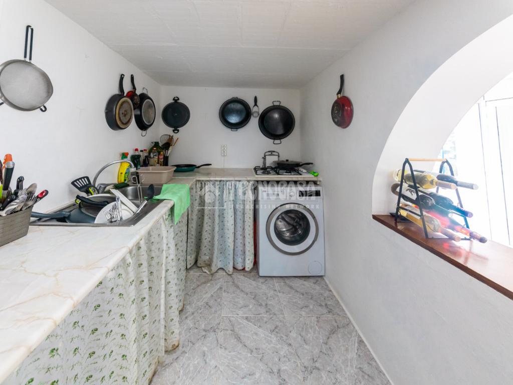 La casa principal dispone de tres habitaciones, dos de ellas dobles con armarios empotrados y una habitación individual. La habitación principal cuenta además con aire acondicionado, proporcionando un mayor confort. El salón comedor es acogedor y luminoso, y la cocina está equipada con gas butano, sistema que abastece toda la vivienda. Las ventanas de doble cristal garantizan un buen aislamiento.